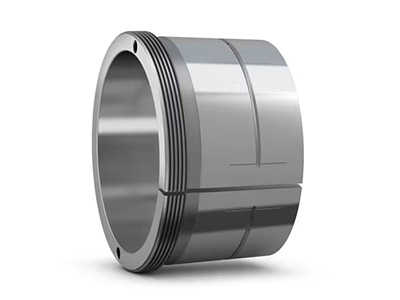 退卸套可用于将圆锥孔轴承安装在阶梯轴的圆柱型轴颈上。退卸套被压入轴承内圈内孔中,内圈则压靠在轴肩或类似定位部件上。可使用螺母或端板来固定退卸套。适用于带有相应防松装置的 KM 或 HM 锁紧螺母(需要键槽的锁紧螺母)。